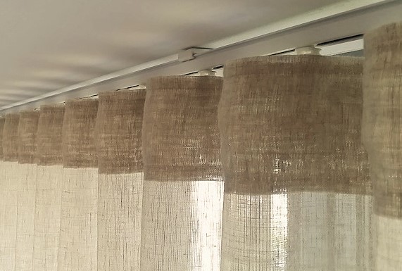 A single linen look sheer curtain to match our tracks